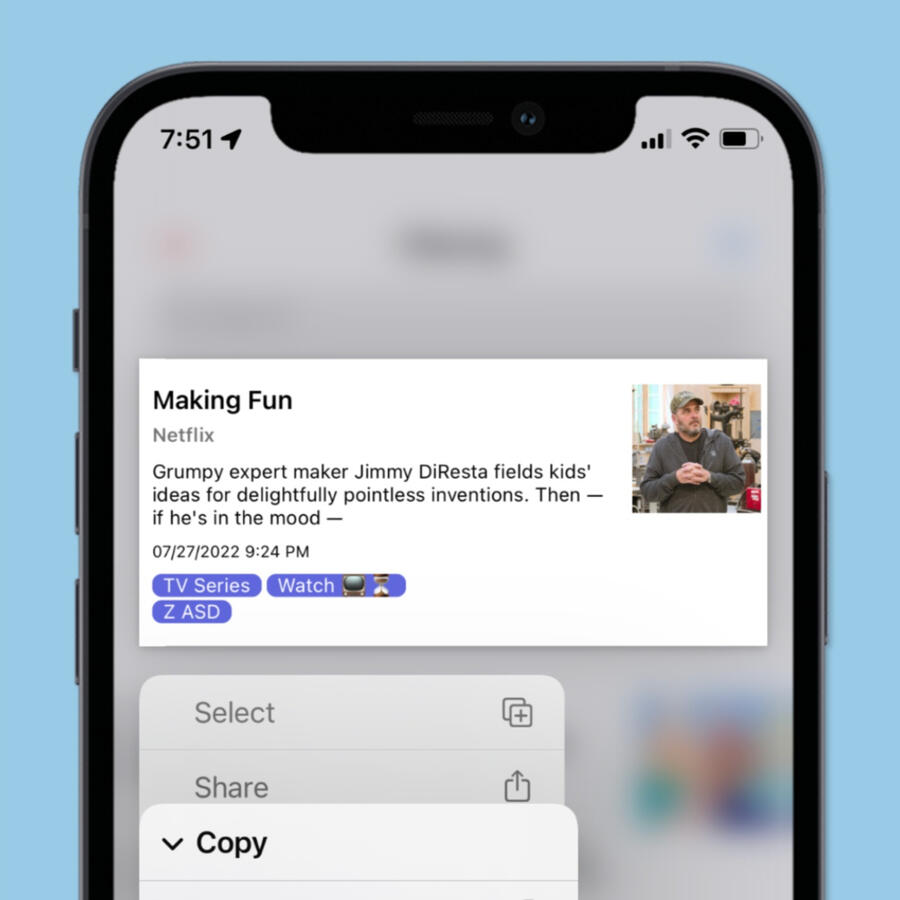 News articles, videos, recipes, places, restaurants, how-to information — the list goes on. You can even add your own text notes if you'd like.